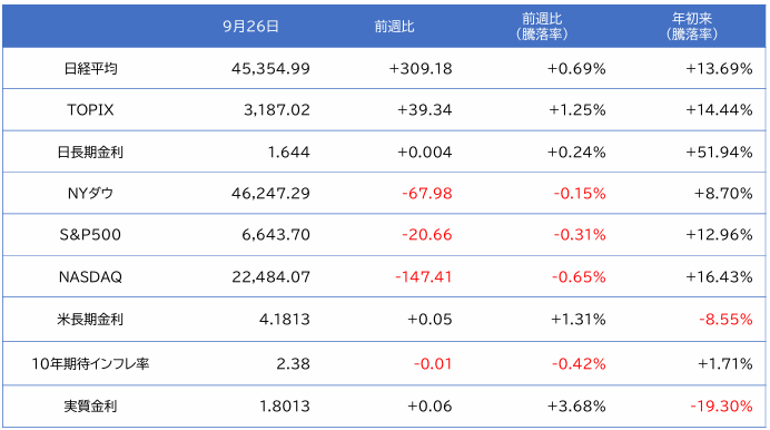 2025/09/28 15:00 | 先週のマーケット | コメント(0)